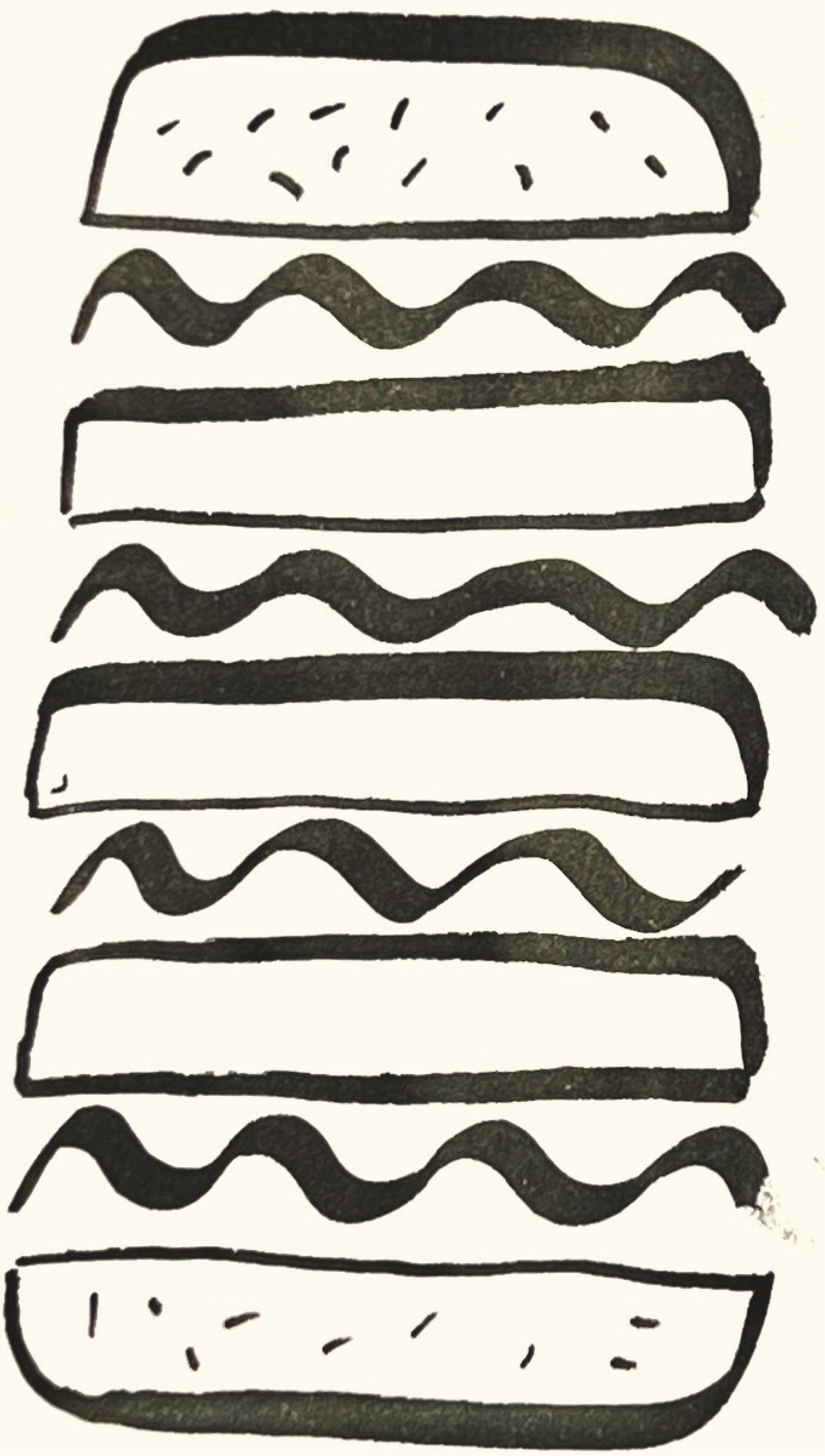 Next to the top bun write time when you start your planning, for example “10:00”.