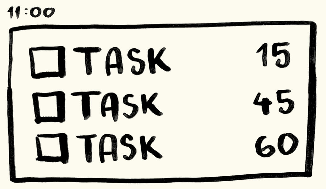 This is your first task of the day. During that time, you will draw your WorkBurger with tasks for each hour. Next tasks you will create in similar way.