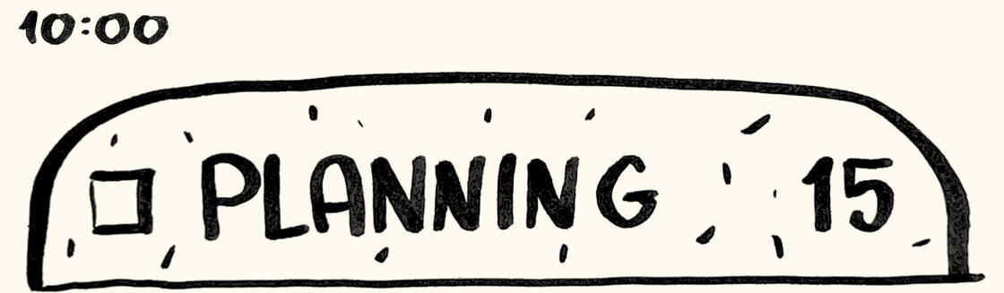 This is your first task of the day. During that time, you will draw your WorkBurger with tasks for each hour. Next tasks you will create in similar way.